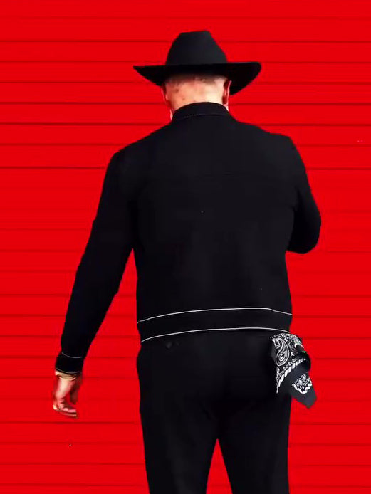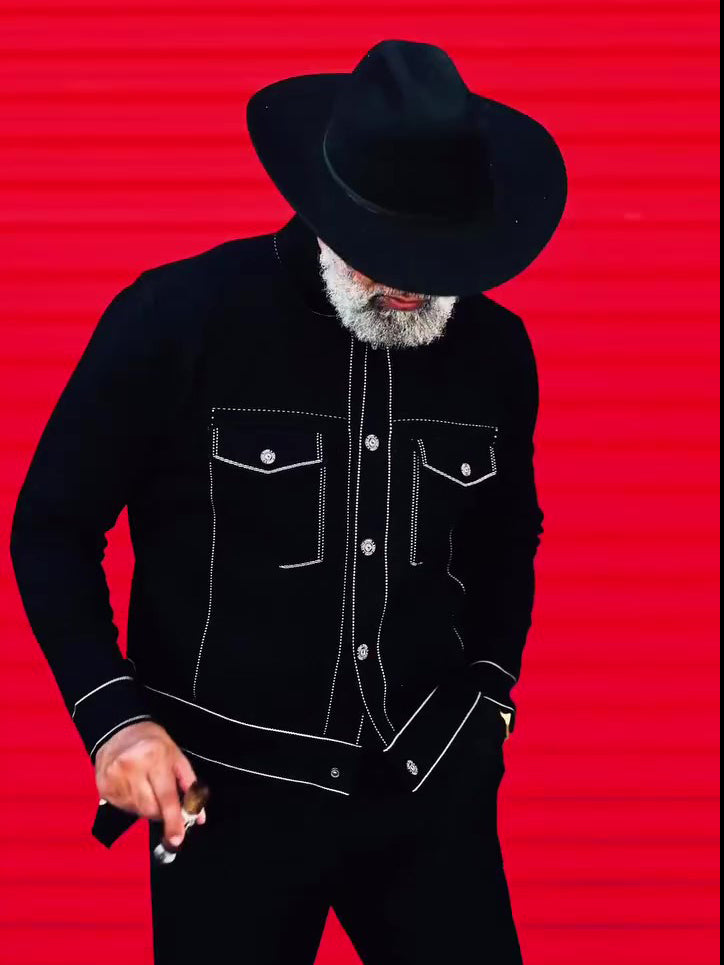 Black Denim Jacket With White Topstitching Detail