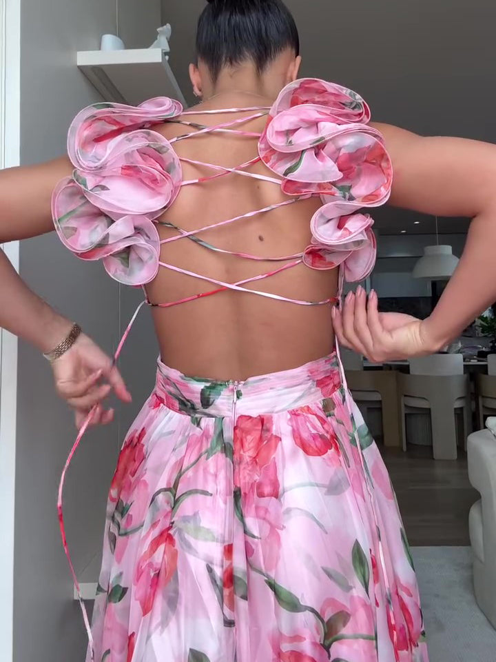 Floral Print Open Back Strap Maxi Dress