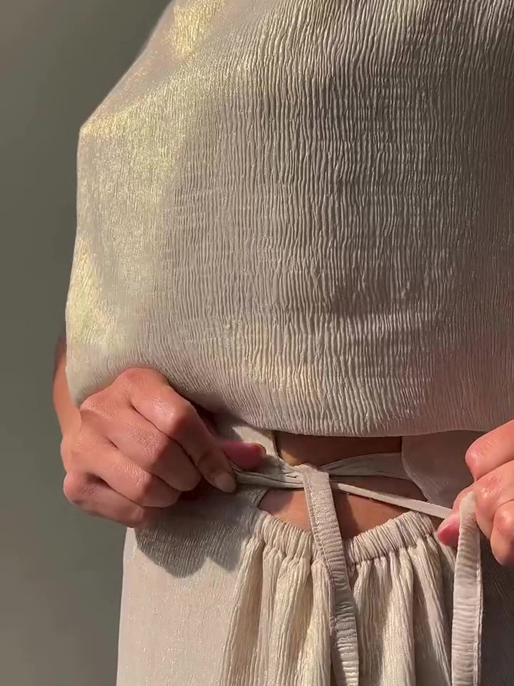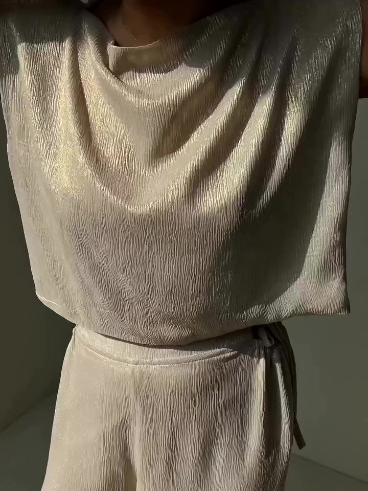Glossy Sleeveless Top & Strappy Wide-leg Pants Set