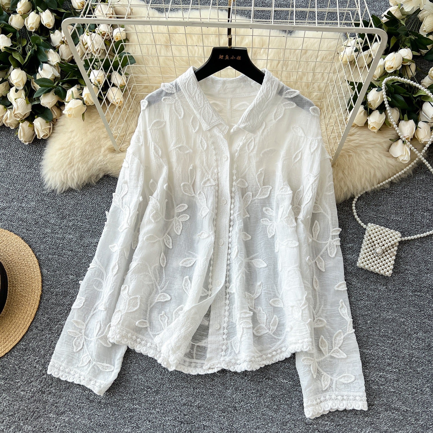 Heavy Industry Leaf Embroidery Cardigan Long Sleeve Top