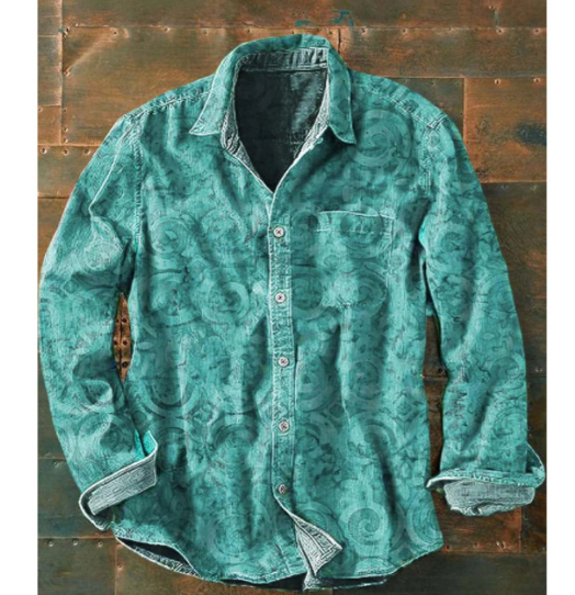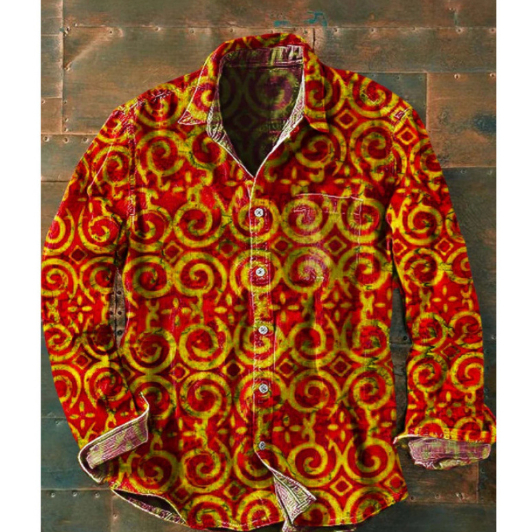 Mens Color-Block Printed Long-Sleeve Button-Up Top