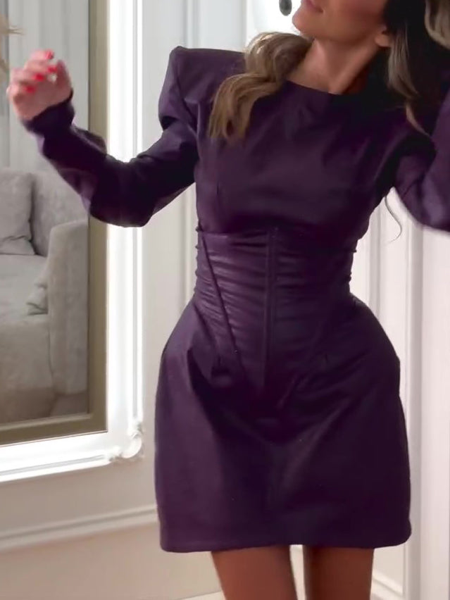 Purple Mini Dress With Structured Shoulders And Corset Waist