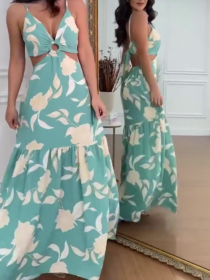 Resort Print Cutout Sleeveless Dress